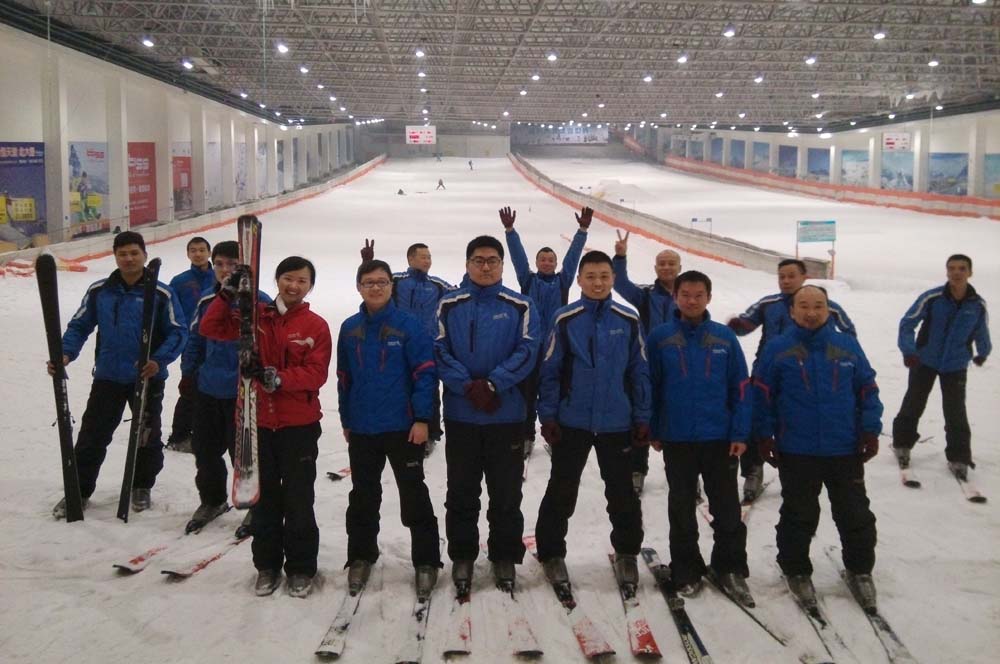 到了目的地,在導(dǎo)游的安排下,大家直奔紹興喬波冰雪世界,換上雪服,帶上雪板和雪鞋,由于都是新手,基本上是靠摔跤來完成剎車動作,雖說雪場寒冷,但是大家的熱情絲毫不減。