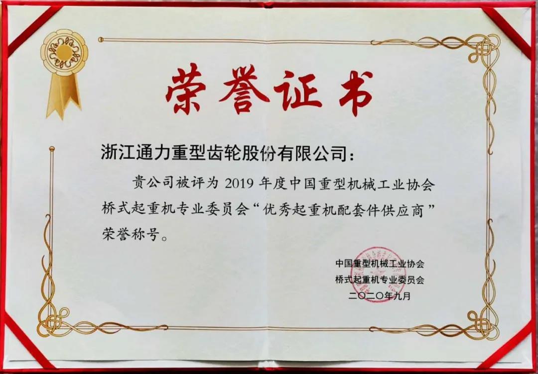 近日,通力收到了一份中國重型機(jī)械工業(yè)協(xié)會橋式起重機(jī)專業(yè)委員會頒發(fā)的榮譽(yù)證書,通力被評為2019年度中國重型機(jī)械工業(yè)協(xié)會橋式起重機(jī)專業(yè)委員會“優(yōu)秀起重機(jī)配套件供應(yīng)商”的榮譽(yù)稱號。
