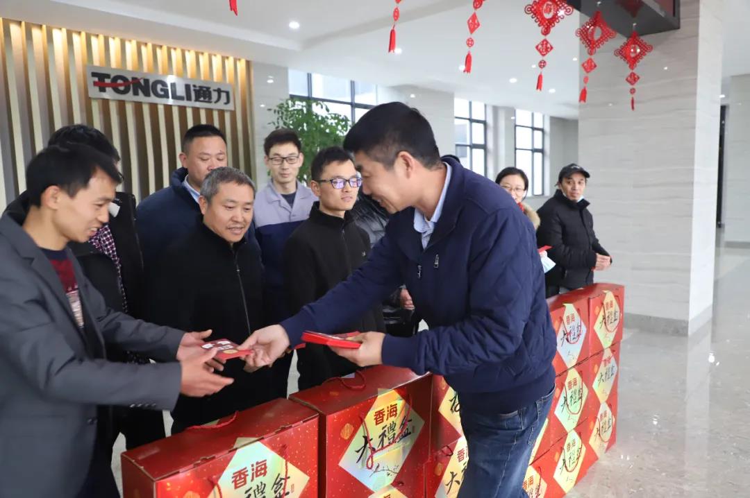 2月8日(臘月二十七),為響應(yīng)國(guó)家鼓勵(lì)企業(yè)職工就地過(guò)年的號(hào)召,為給予今年留在瑞安就地過(guò)年的通力員工新年祝福和溫暖,通力黨支部、工會(huì)連同行政部特為通力留瑞就地過(guò)年的職工代表們送上新春大禮包,祝愿員工們新春愉快。公司黨支部書記項(xiàng)建設(shè)代表公司向員工們一一送上禮包。