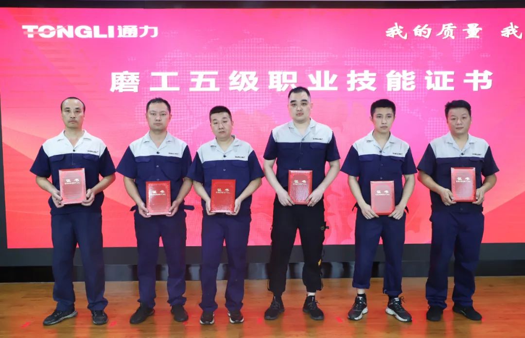 會議伊始,生產(chǎn)車間主任鄭德文、黃維鑾分別為我們21位總裝車間員工頒發(fā)鉗工五級職業(yè)技能證書及41位磨齒車間員工頒發(fā)磨工五級職業(yè)技能證書,并希望獲得證書的同事們在日后工作中繼續(xù)提升自身工作技藝、精益求精,再創(chuàng)佳績。