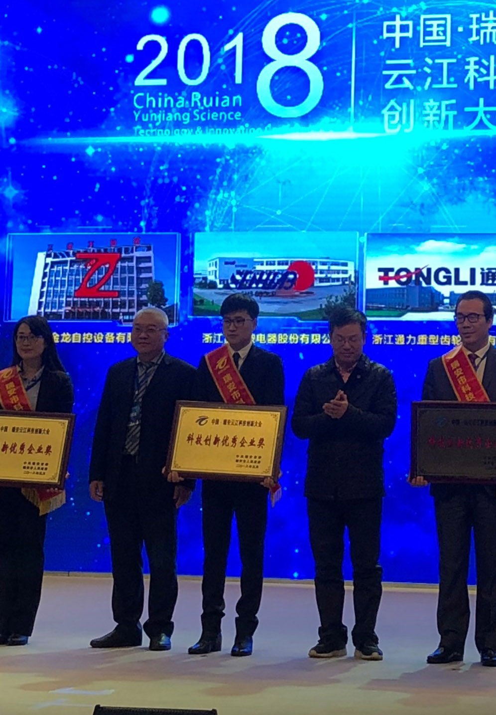 本次會議對15家瑞安市科技創(chuàng)新優(yōu)秀企業(yè)、2個(gè)瑞安市領(lǐng)軍型創(chuàng)新創(chuàng)業(yè)團(tuán)隊(duì)、10位瑞安市青年科創(chuàng)之星獲得者進(jìn)行了表彰。浙江通力重型齒輪股份有限公司榮獲市科技創(chuàng)新優(yōu)秀企業(yè),通力總經(jīng)理助理項(xiàng)純堅(jiān)代表公司上臺領(lǐng)獎。