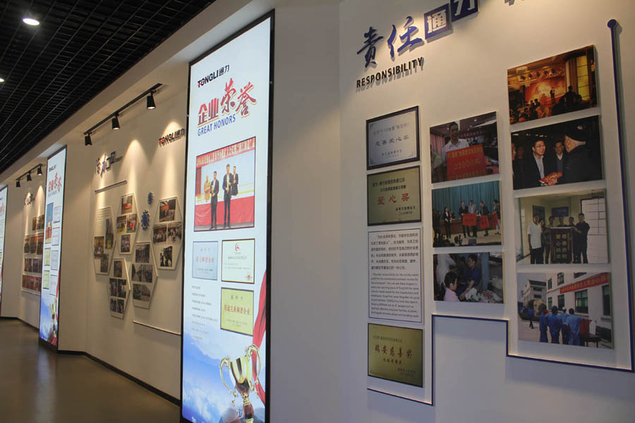 文化展廳分為黨建文化和企業(yè)文化兩大模塊。企業(yè)文化又分為、“發(fā)展歷程”、“活力通力”、“科技通力”、“榮譽(yù)通力”、“領(lǐng)導(dǎo)關(guān)懷”、“社會(huì)責(zé)任”、“國(guó)際合作”以及產(chǎn)品展示等內(nèi)容。企業(yè)綜合文化展廳直觀、充分地展示了公司近三十年來(lái)風(fēng)雨兼程的發(fā)展道路,充分詮釋企業(yè)核心價(jià)值觀及企業(yè)的核心文化內(nèi)涵。讓來(lái)訪的客人能夠更加清晰了解通力、信任通力,合作通力。